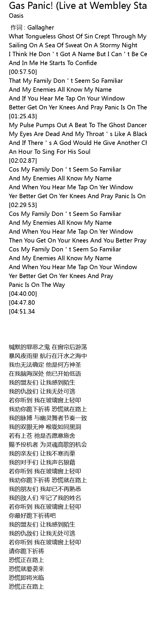 | [01:18.95] | Better Get On Yer Knees And Pray Panic Is On The Way |