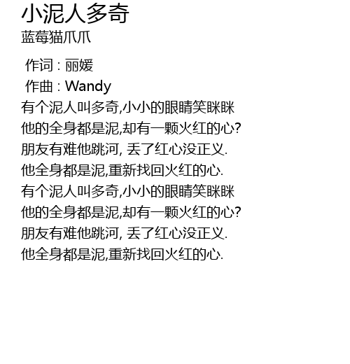 | [00:04.818] | 有个泥人叫多奇,小小的眼睛笑眯眯 |