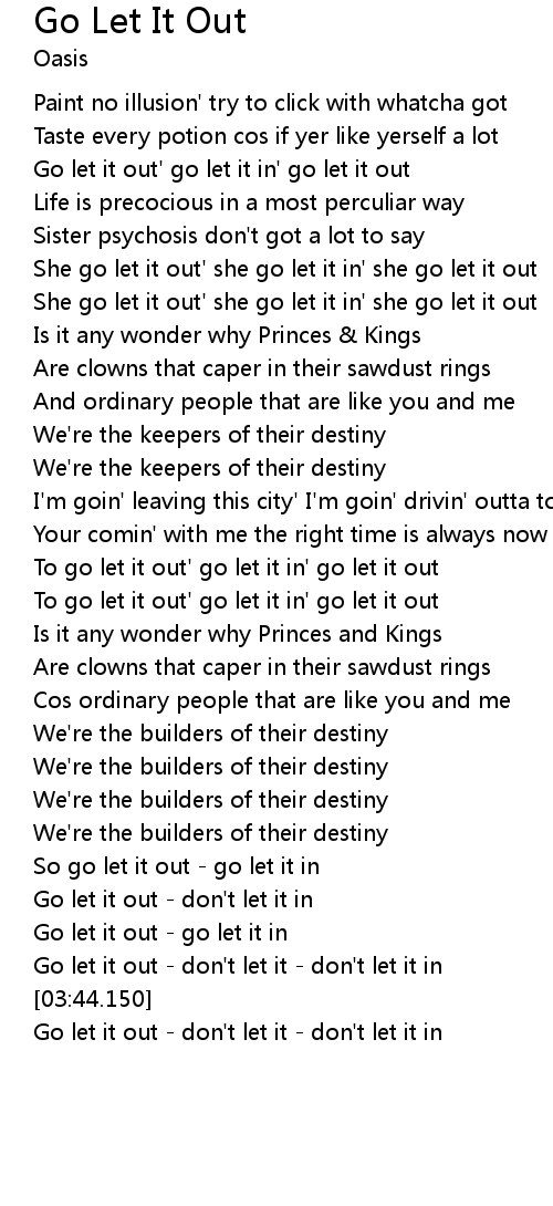 | [03:44.900] | Go let it out don' t let it don' t let it in |