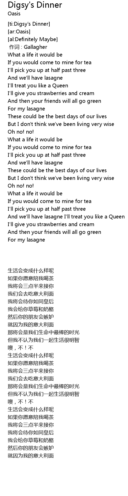 | [01:17.61] | And we'll have lasagne |