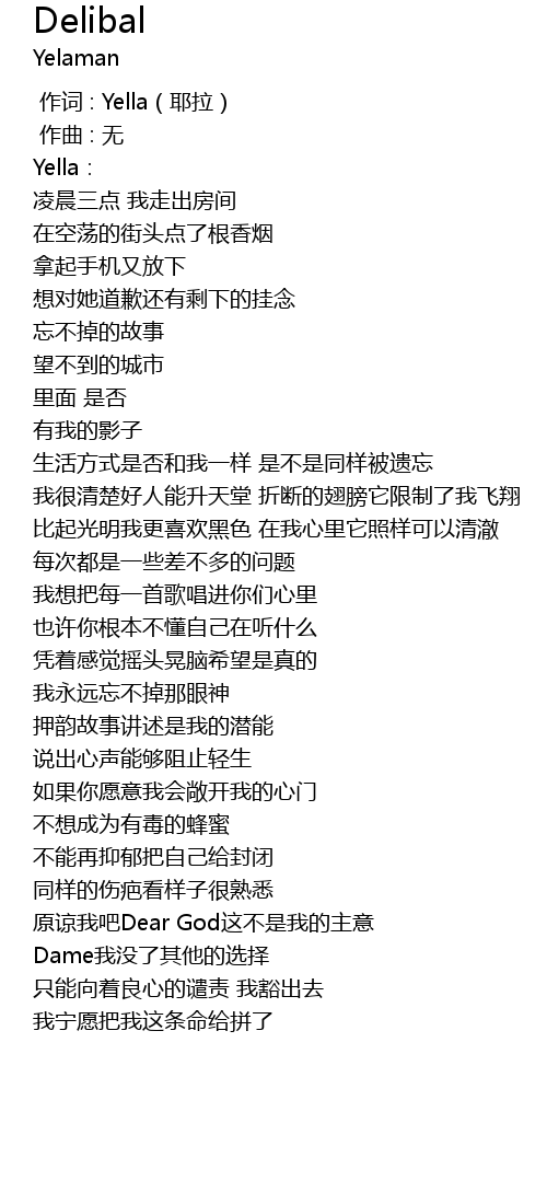 | [00:00.000] | 作词 : Yella(耶拉) |