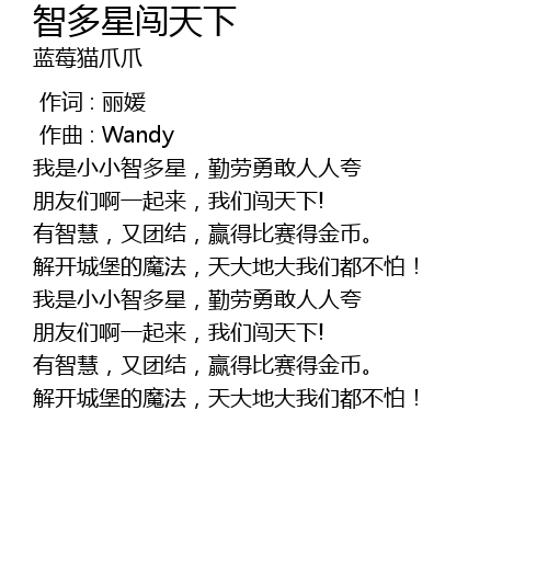 | [00:02.391] | 我是小小智多星,勤劳勇敢人人夸 |