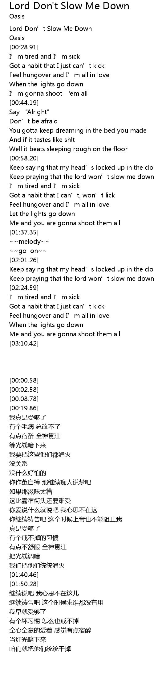 | [00:00.58] | Lord Don' t Slow Me Down |