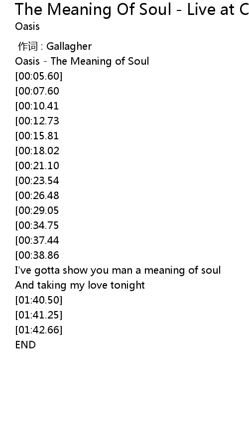 | [00:00.00] | Oasis - The Meaning of Soul |