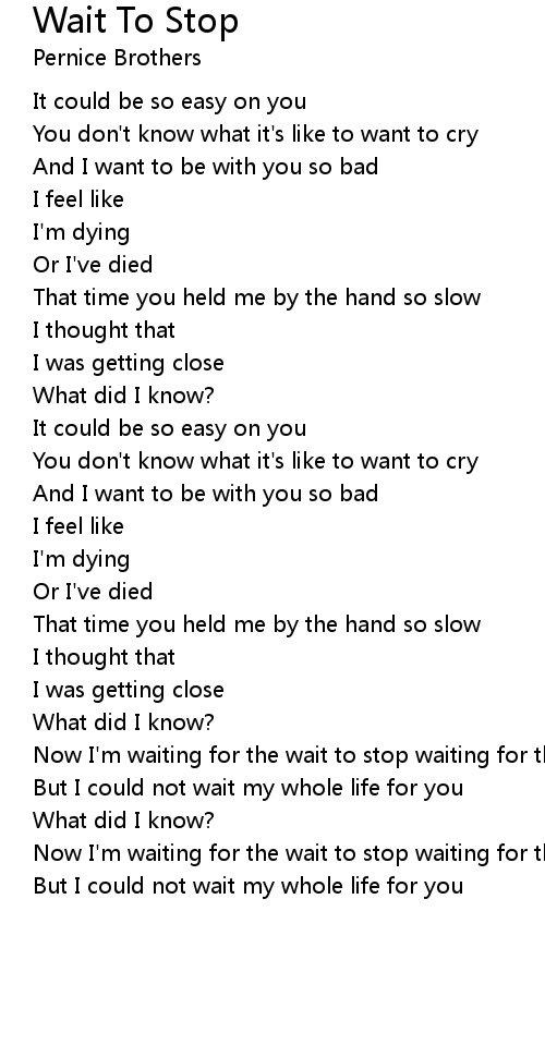Now I'm waiting for the wait to stop waiting for the wait to stop |