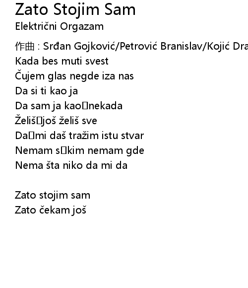 | Song | Zato Stojim Sam |