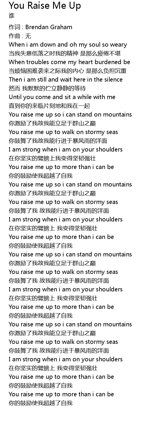 | You raise me up to more than i can be | |