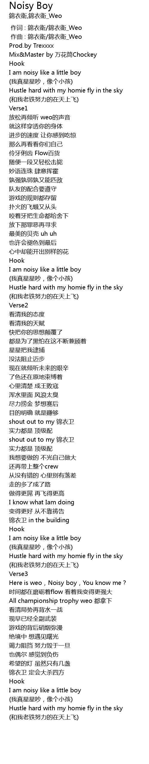 | [02:36.826] | Here is weo, Noisy boy, You know me? |