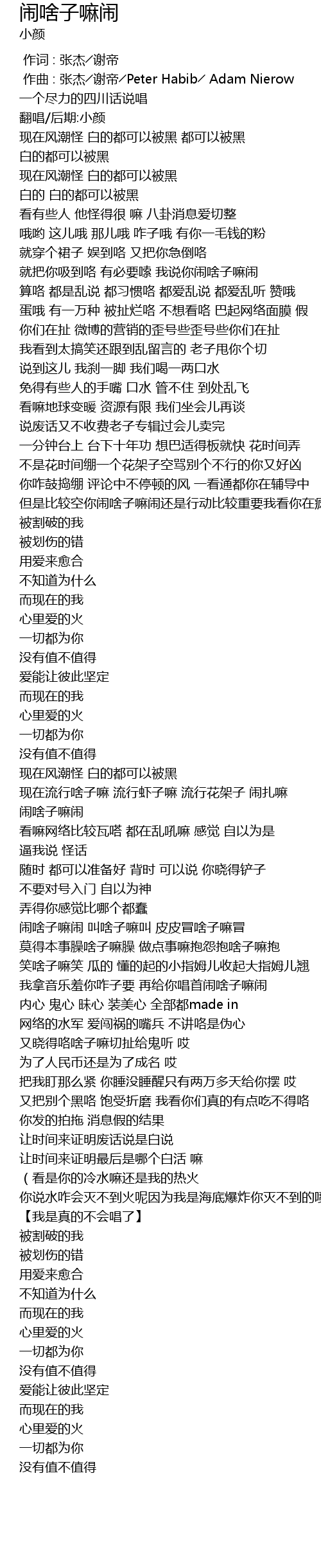 | [01:58.197] | 闹啥子嘛闹 叫啥子嘛叫 皮皮冒啥子嘛冒 |