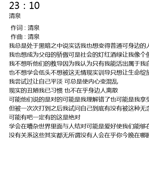 | [00:22.923] | 我也想成为父母的骄傲可是社会的灯红酒绿让我像个傻子一样猛然坠入 |