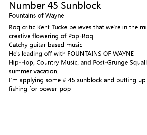 | [00:16.28] | I'm applying some # 45 sunblock and putting up a sign saying gone fishing for power-pop |