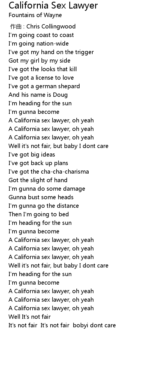 | [02:26.68] | A California sex lawyer, oh yeah |