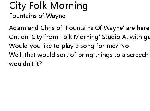 | [00:00.82] | Adam and Chris of 'Fountains Of Wayne' are here with me |
