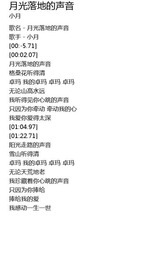 | [00:-14.63] | 歌名-月光落地的声音 |