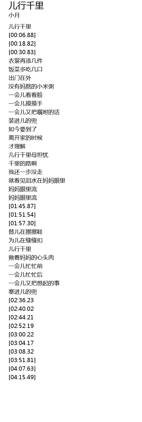 | [01:18.70] | ér xíng qiān lǐ mǔ dān yōu |