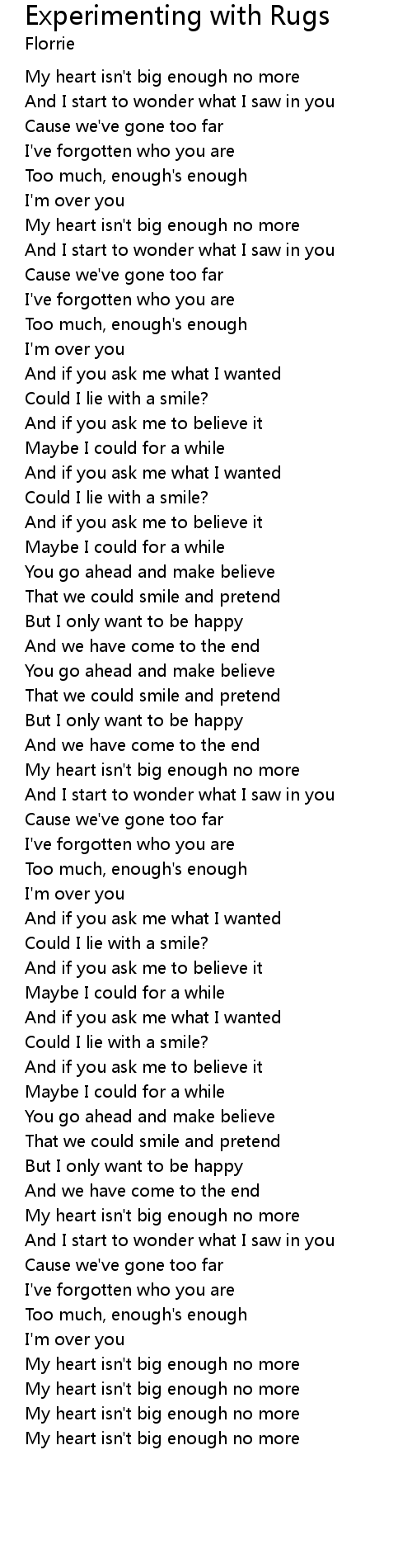 My heart isn't big enough no more |