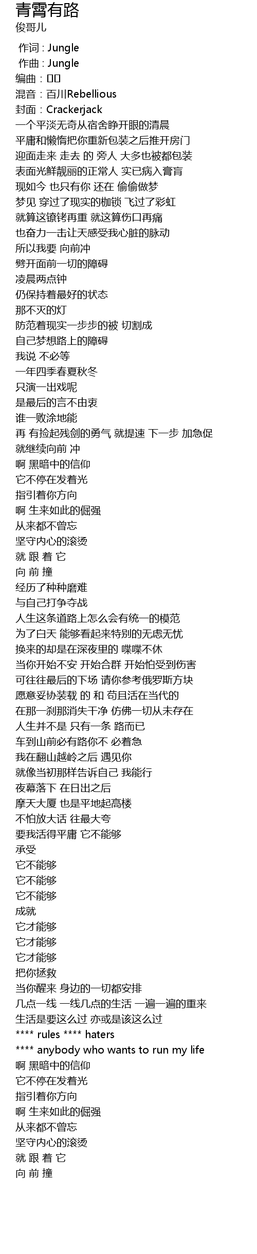 | [01:49.283] | chē dào shān qián bì yǒu lù nǐ bù bì zháo jí |