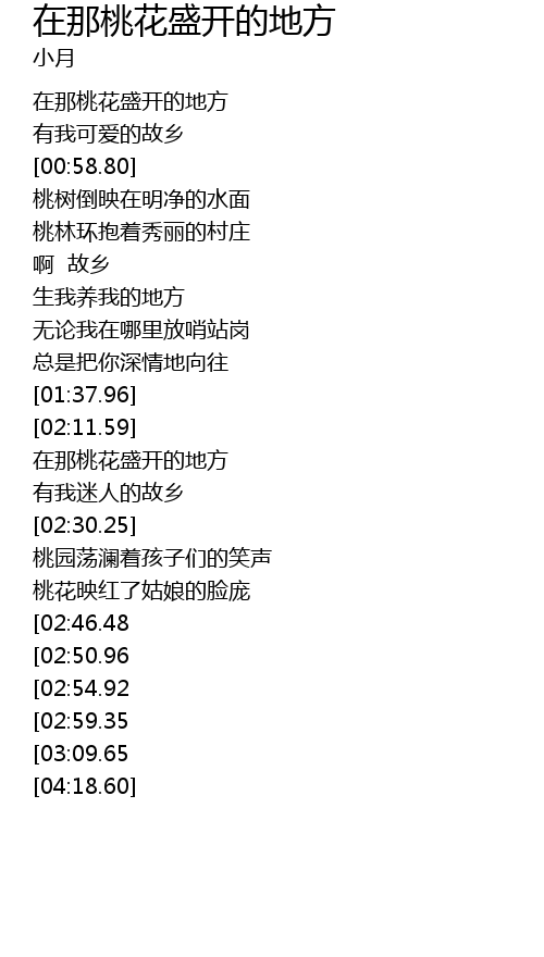 | [00:43.22] | zài nà táo huā shèng kāi de dì fāng |