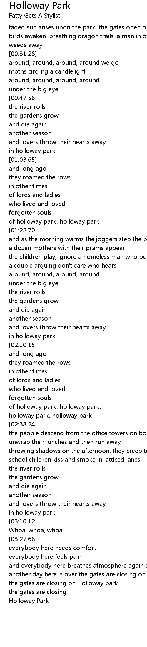 [00:16.54] faded sun arises upon the park, the gates open on another day
