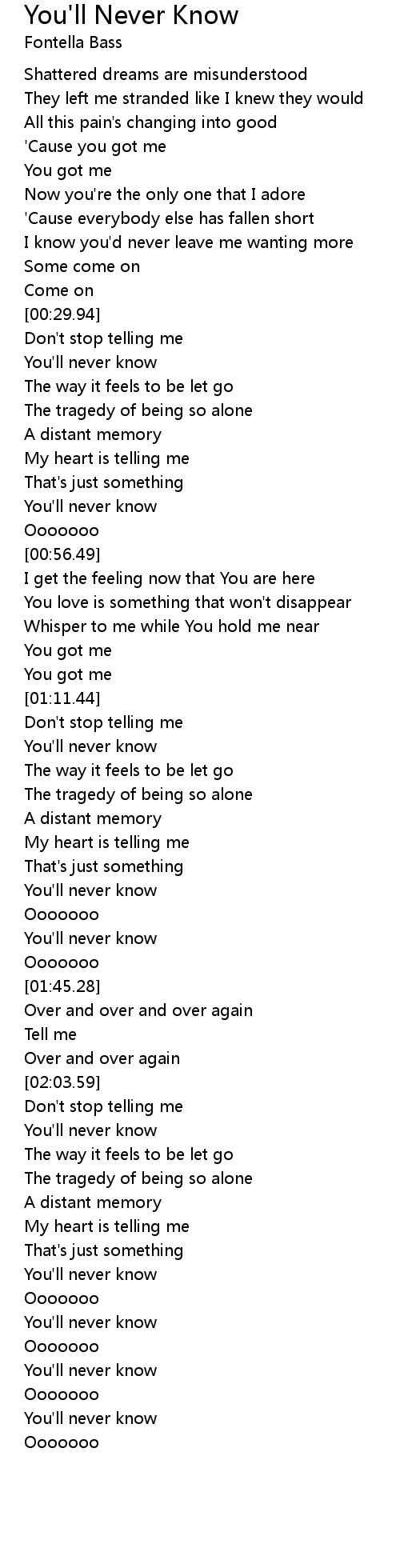 You'll never know |