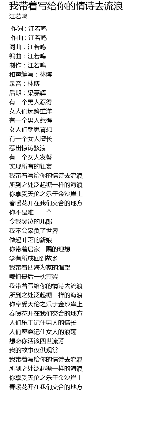| [03:37.876] | 我带着写给你的情诗去流浪 |