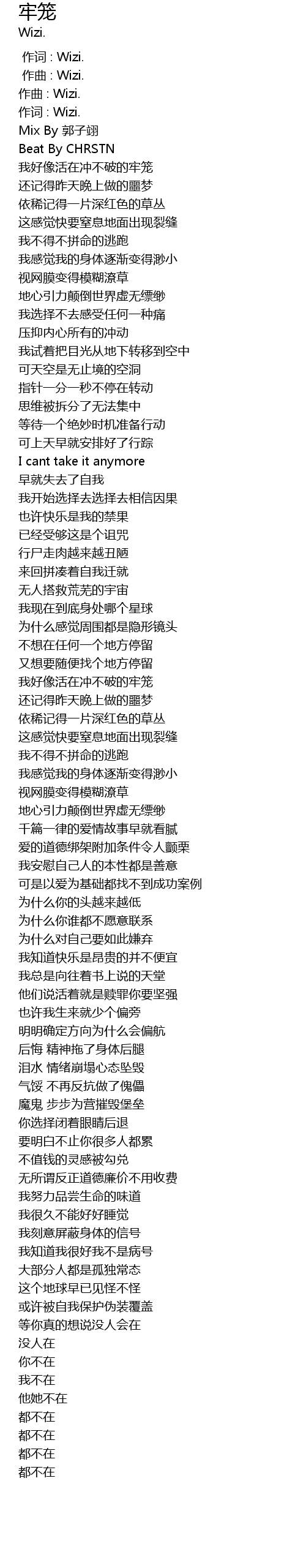 | [01:52.255] | 我好像活在冲不破的牢笼 |