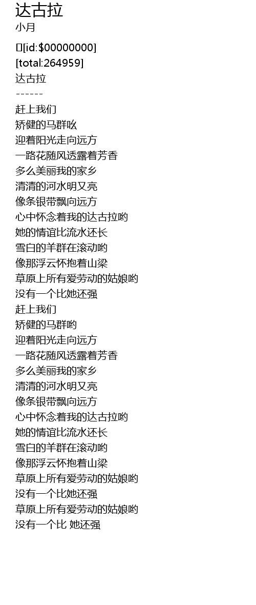 | [03:17.337] | 心中怀念着我的达古拉哟 |