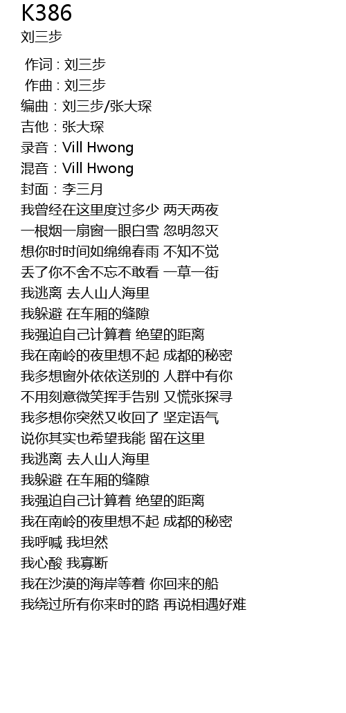 | [00:00.427] | 编曲:刘三步/张大琛 |