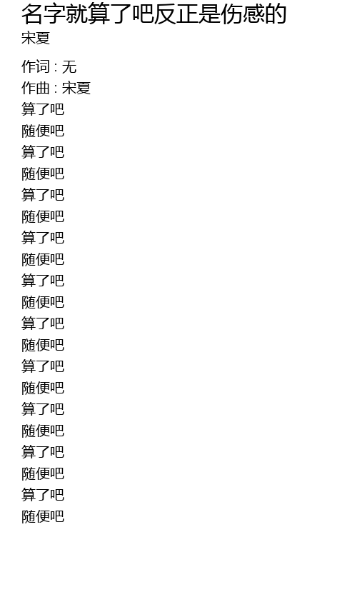 ming zi jiu suan le ba fan zheng shi shang gan de Lyrics
