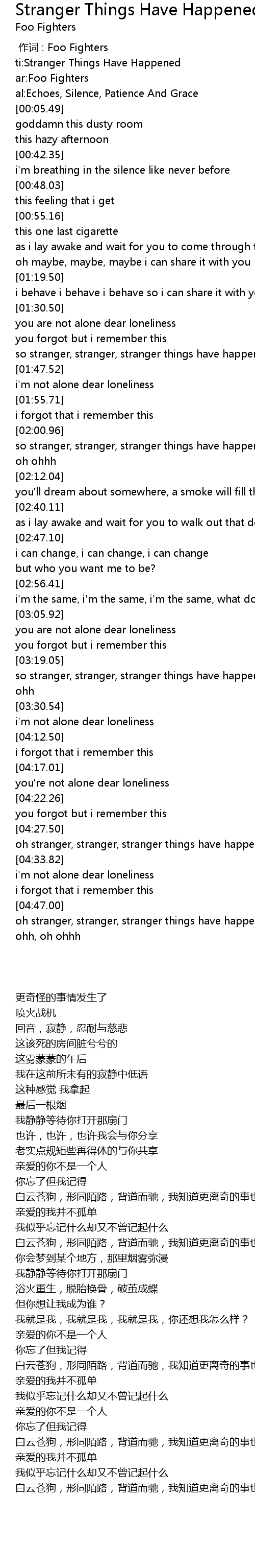 | [04:48.32] | oh stranger, stranger, stranger things have happened i know oh ohh, oh ohh, oh ohhh |