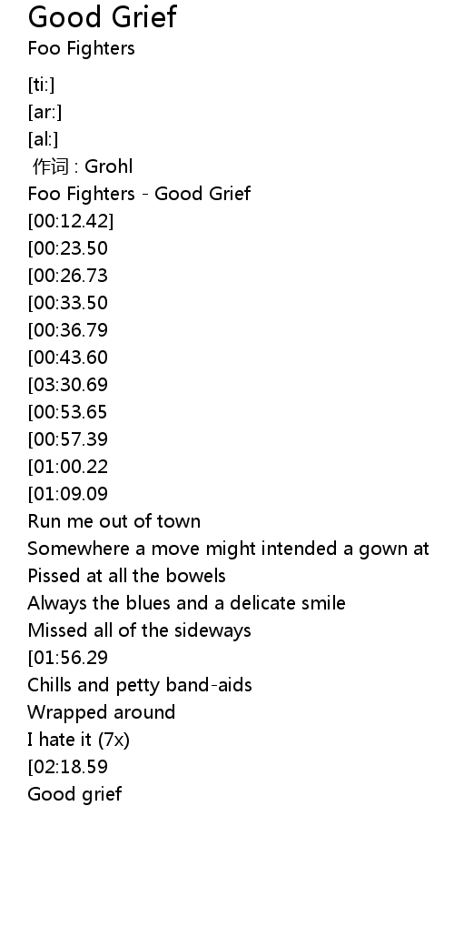 | [03:43.28][01:00.22] | I hate it (7x) |