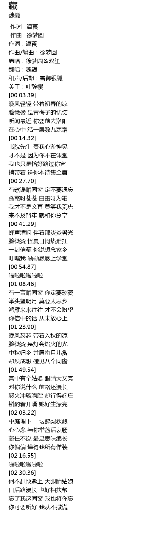 | [00:02.53] | 翻唱:魏巍 |