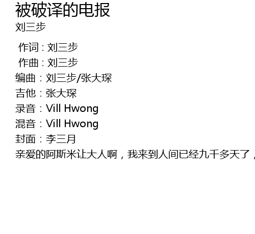 | [00:02.929] | 编曲:刘三步/张大琛 |