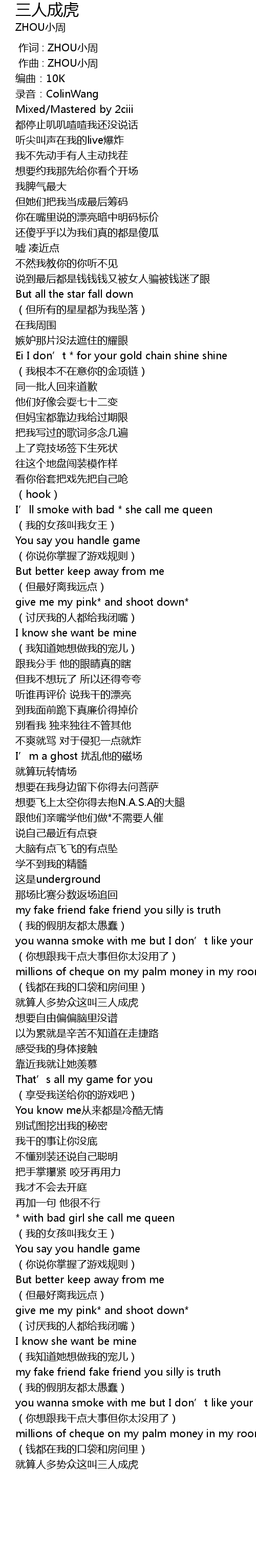 | [02:53.680] | jiù suàn rén duō shì zhòng zhè jiào sān rén chéng hǔ |