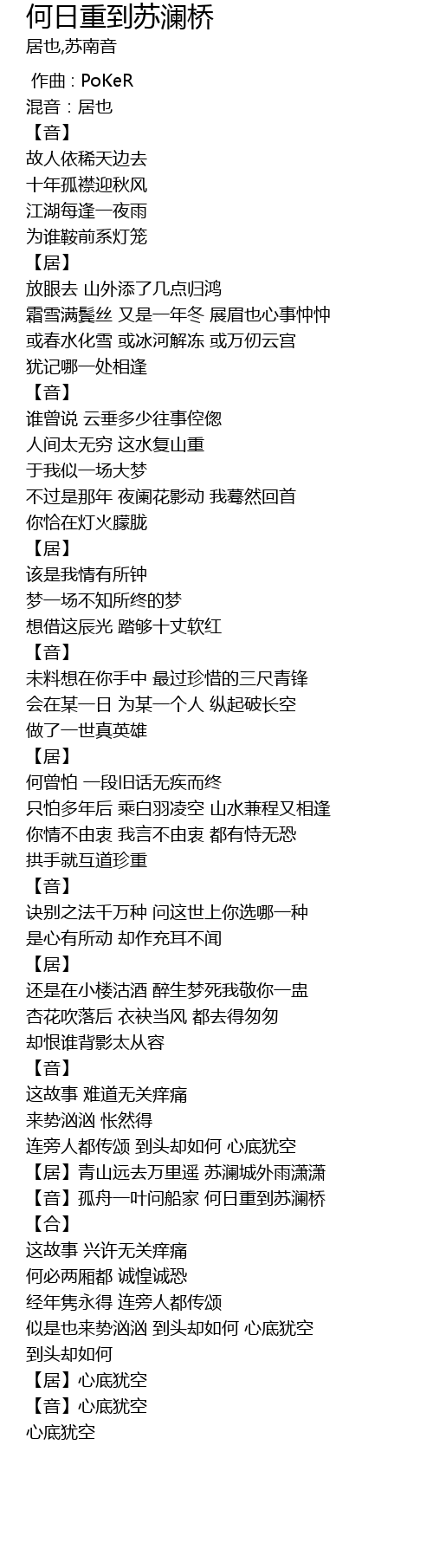 | [03:26.83] | yīn gū zhōu yī yè wèn chuán jiā hé rì zhòng dào sū lán qiáo |