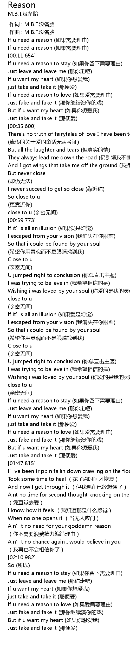 | [00:01.404] | If u need a reason (如果需要理由) |