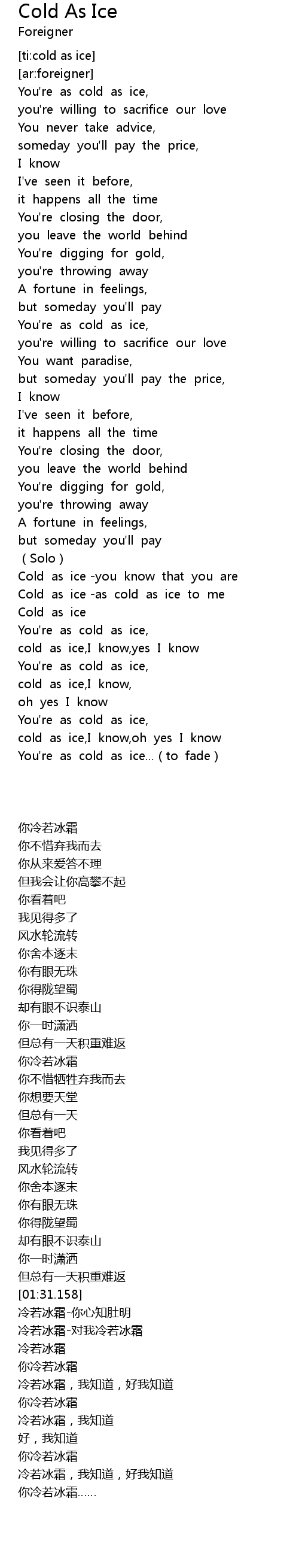 | [01:53.877] | Cold as ice -as cold as ice to me |