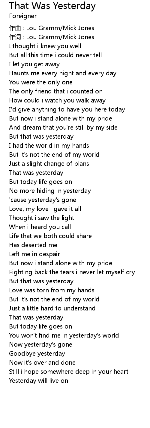 | Song | That Was Yesterday |