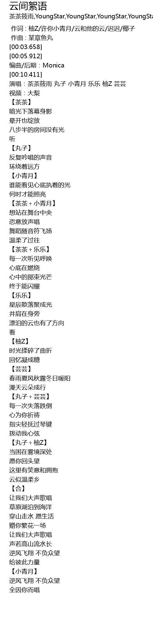 | [00:00.000] | 作词 : 柚Z/许你小青月/云和他的云/迟迟/椰子 |