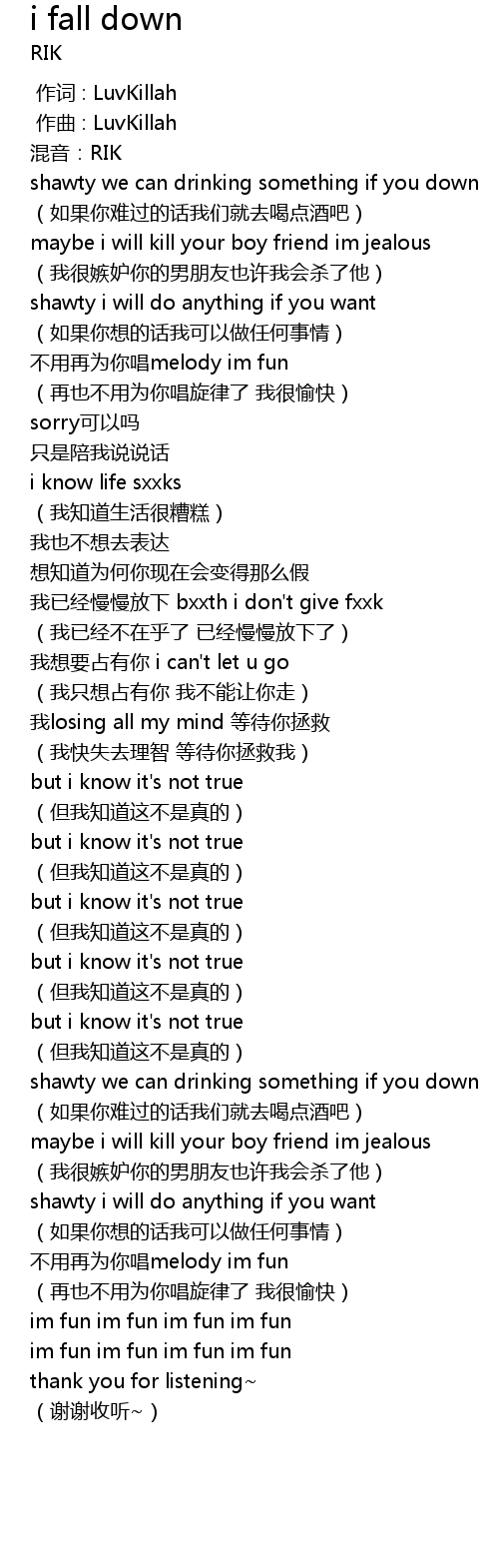 | [00:42.179] | bu yong zai wei ni chang melody im fun |