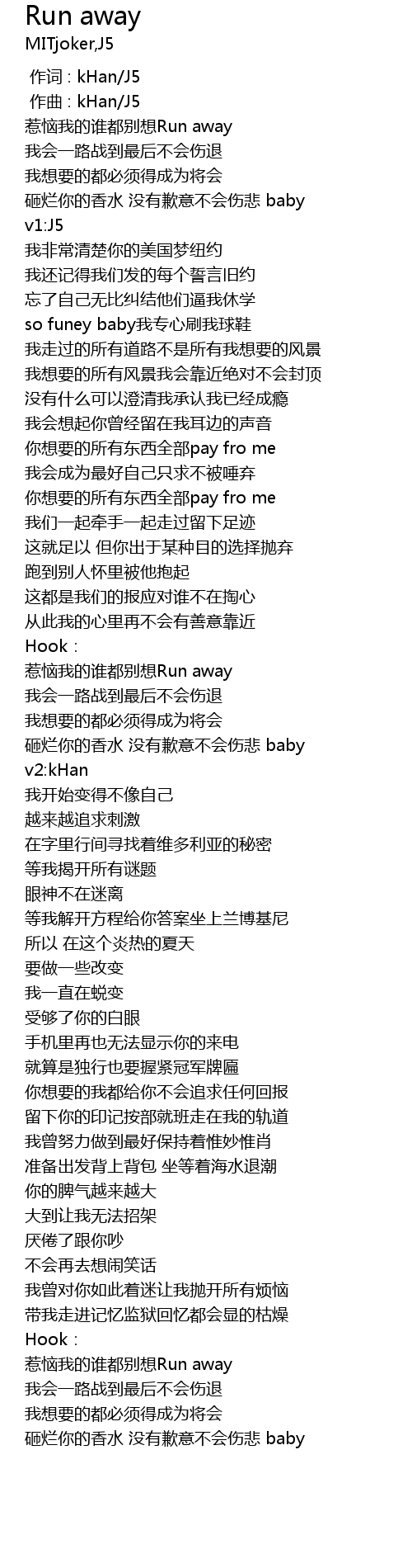 | [01:23.948] | rě nǎo wǒ de shuí dōu bié xiǎng Run away |