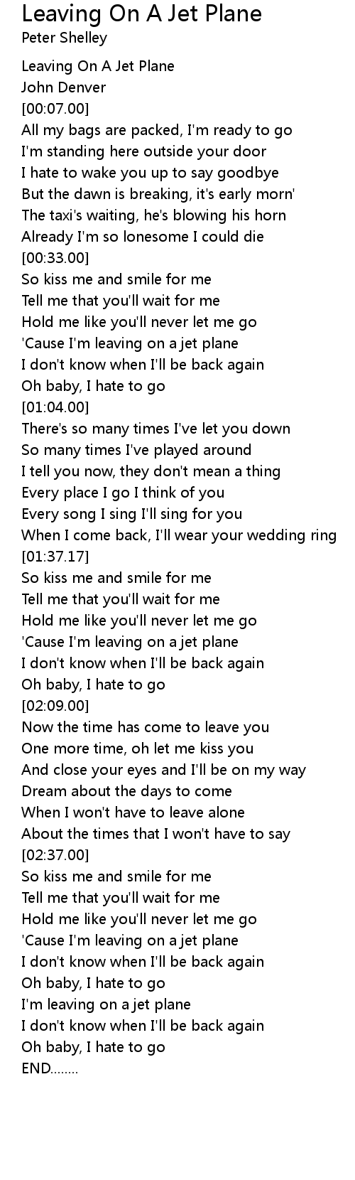 [02:54.05] 'Cause I'm leaving on a jet plane