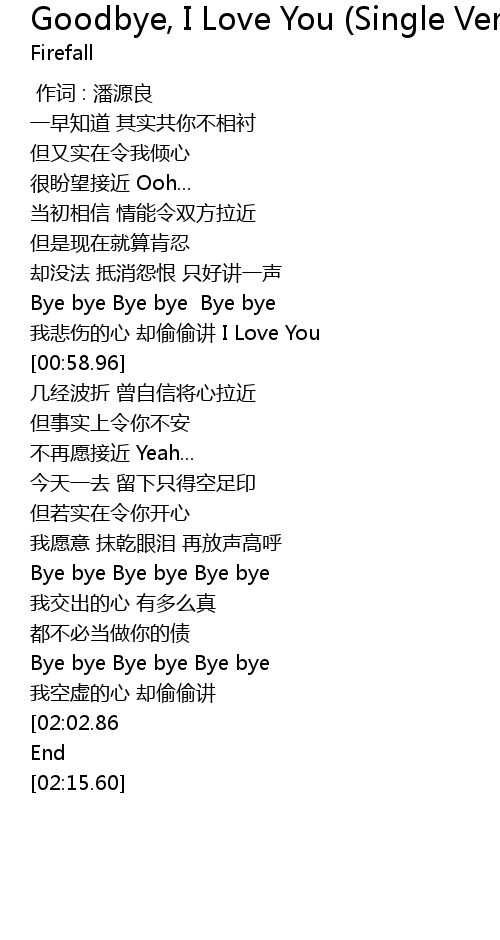 | [00:42.59] | Bye bye Bye bye Bye bye |
