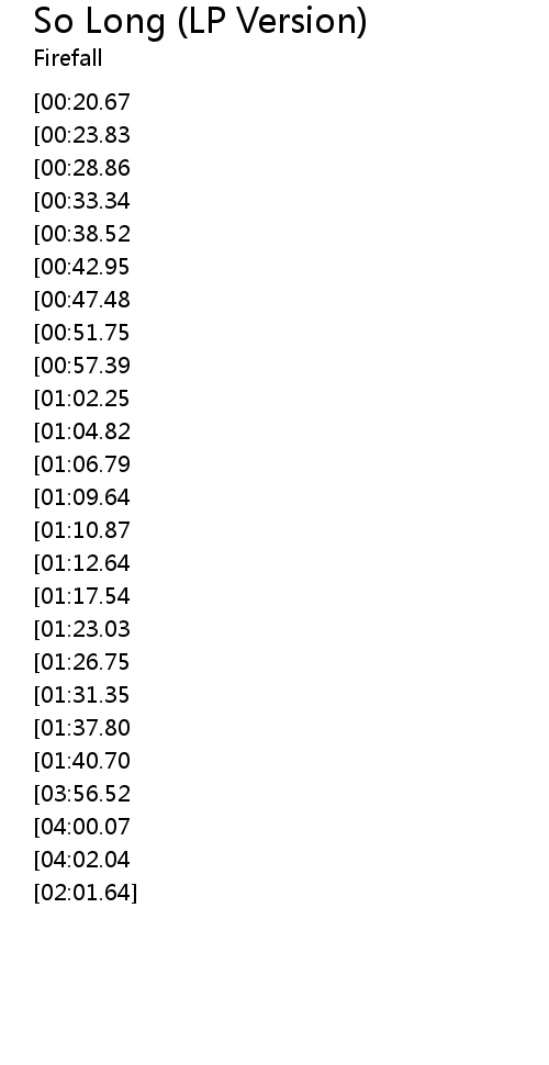 | [02:48.12][00:38.52] | SO LONG I' VE BEEN WAITING SO LONG |