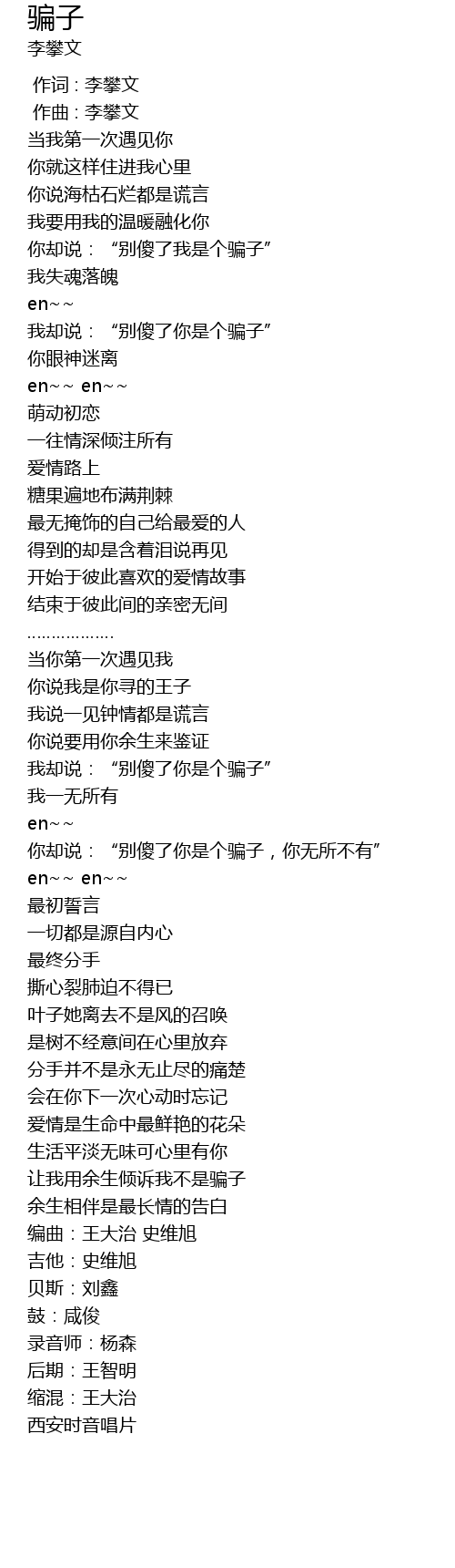 | [00:37.187] | 你却说:“别傻了我是个骗子” |