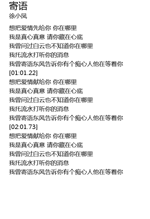 | [02:04.12] | 想把爱情献给你 你在哪里 |