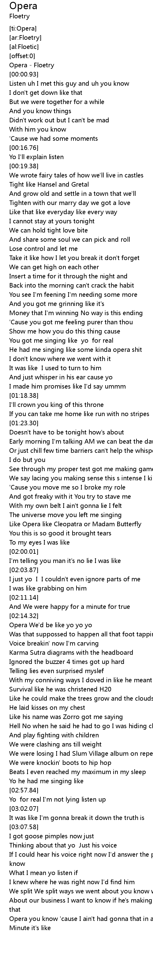 | [00:00.29] | Opera - Floetry |