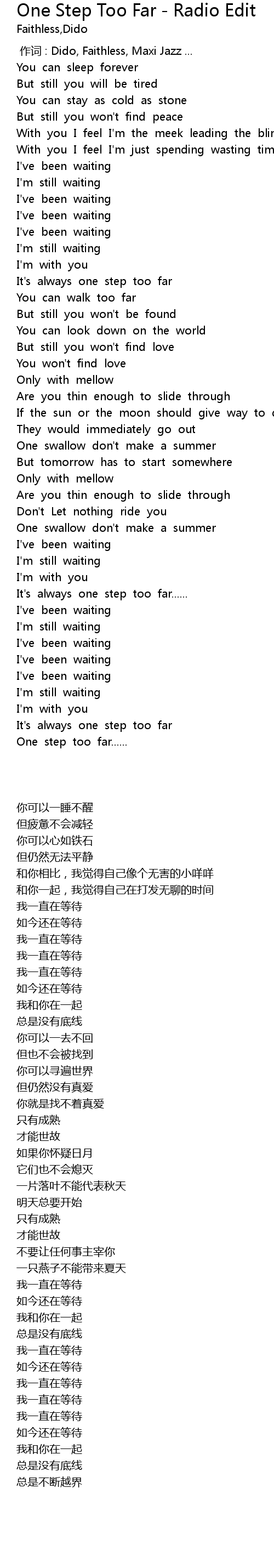 | [00:00.00] | zuò cí : Dido, Faithless, Maxi Jazz ... |