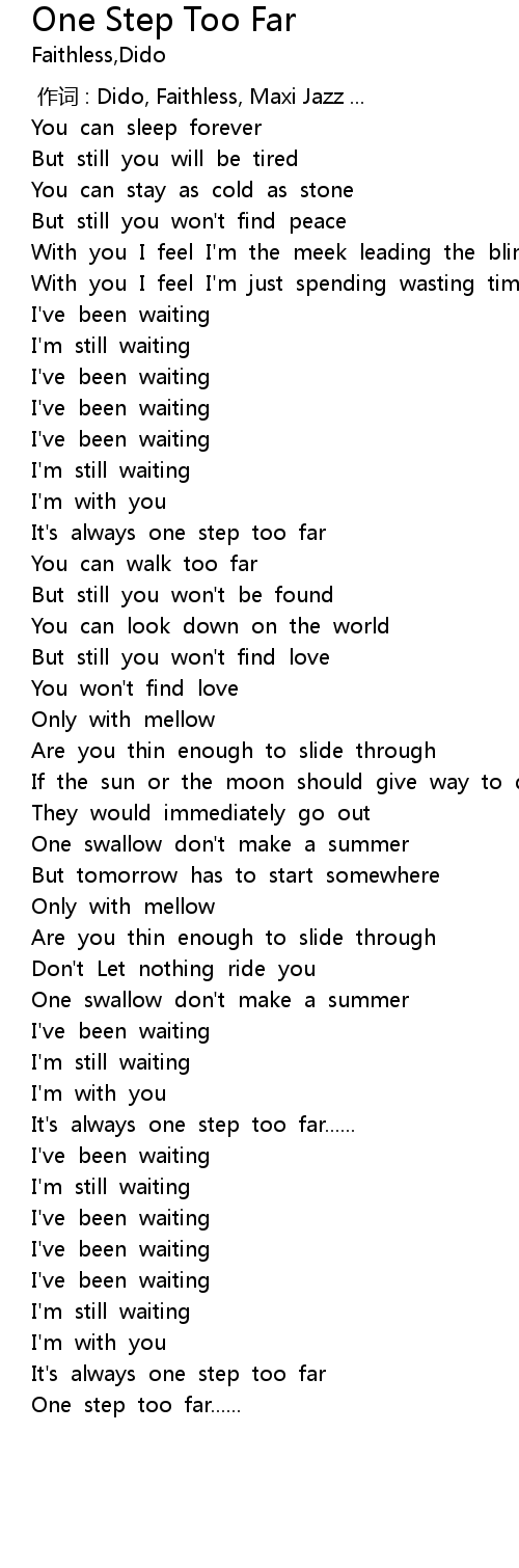 | [00:00.00] | 作词 : Dido, Faithless, Maxi Jazz ... |