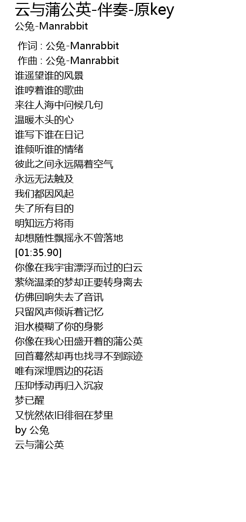 | [00:00.000] | 作词 : 公兔-Manrabbit |